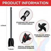 - [Unique Design] This Drill Mixer Attachment is made with a four-blade spiral stirring design. Mixes materials quickly and evenly. Allows you to sufficiently stir without the mess.
