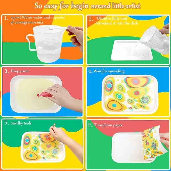 - Endless creative possibilities: With the marbling paint art kit, your imagination is the limit. Explore different techniques such as swirling, combing, or dripping to achieve various patterns and effects. Whether you're creating abstract designs or intricate details, our kit allows you to express your artistic style and unleash your creativity.