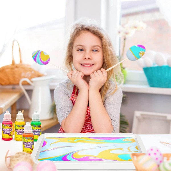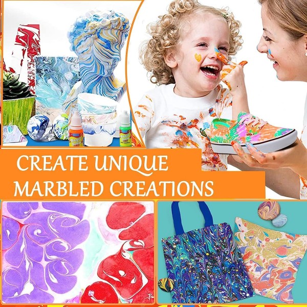 - High-quality, non-toxic materials: We prioritize safety and ensure that our marbling paint kit is made from high-quality, non-toxic materials. The paints are water-based and washable, making it suitable for artists of all ages, including children. Create beautiful marbled patterns with peace of mind.