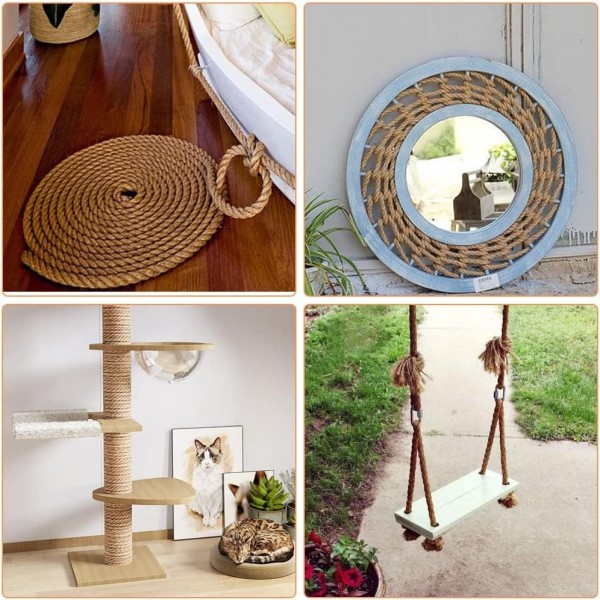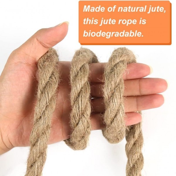 - Material: The rope is made from jute, a natural fiber derived from the jute plant. Jute is known for its strength, durability, and eco-friendliness. It is often used for various applications, including ropes and textiles.