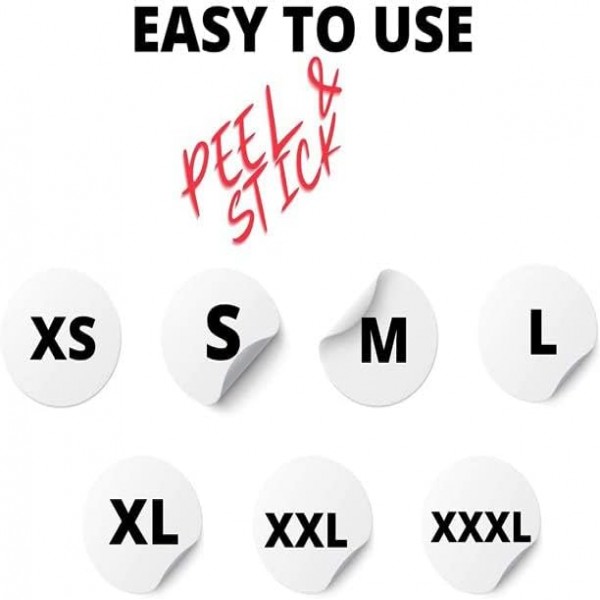 - High Quality: These sizing labels for clothing are highly durable. They easily stick to plastic bags, paper, and fabrics. high-quality stickers that are clearly visible when used with bold, white writing. It is also acceptable to use a marker to write on these labels.