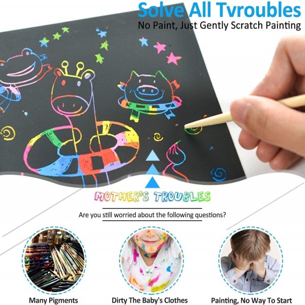 - 100% Safe & Non Toxic Material: Our magic scratch paper is safe and environmentally friendly, made of premium paper & nature wooden stylus. Children play in a non-toxic environment that good for the healthy growth.