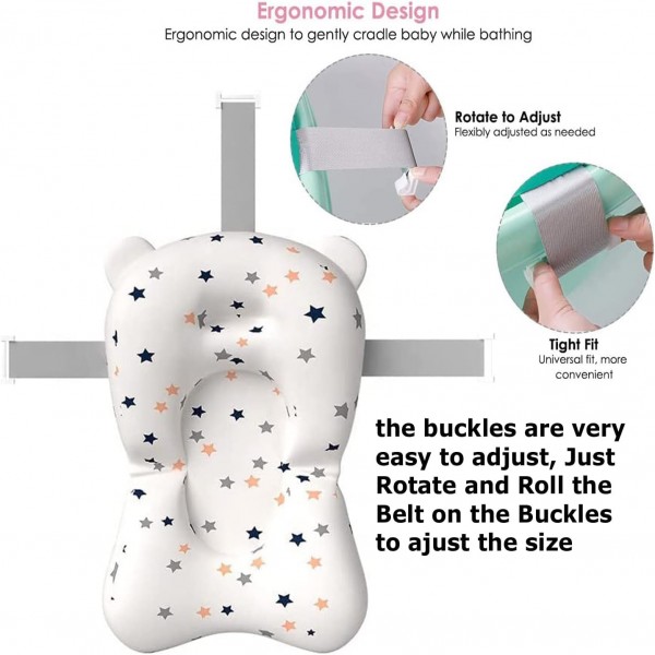 The BEST way to give your baby a bath: For comfort and safe baby bathing, the anti slip or Skid baby bath cushion fits for most bath tub and suitable for New Born baby and also from 0-12 months.