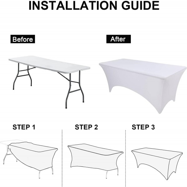 - Perfect Fit Size: This tablecloth runner is made from a thicker spandex tablecloth material. The 6-foot table cover fits on tables that are 72" length x 30" width x 30" height. It is always fitted and tight for standard folding tables.