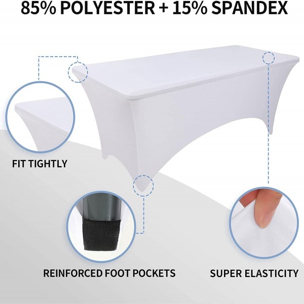 - Several Usage: Our 6ft' tablecloth is ideal for weddings, parties, celebrations, and other special events. Spandex stretch table cover cloth may be used for a variety of purposes. Our tablecloth is perfect for dessert tables, exhibition tables, display tables, buffet tables, massage tables, and DJ tables.
