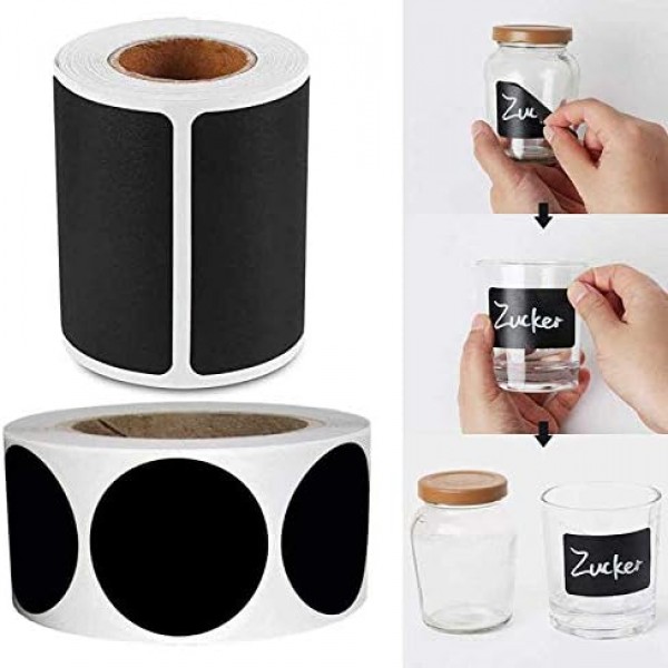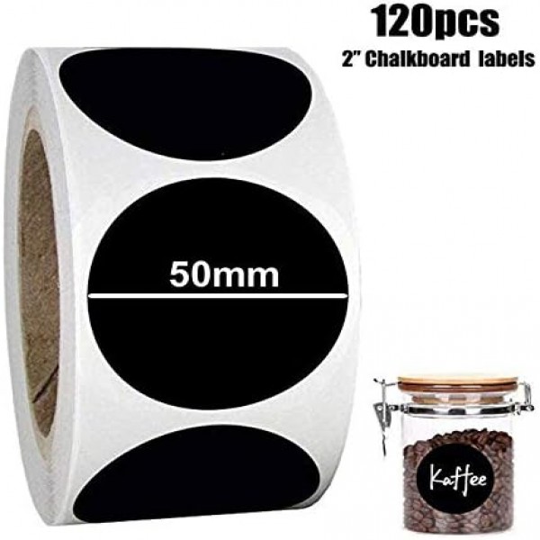 - ✓ Round Labels = Black Matt vinyl Chalk 120 labels (50mmX50mm size) + Rectangle Labels = Black Matt vinyl Chalk 120 labels (55mmX35mm size) so total 240 Labels