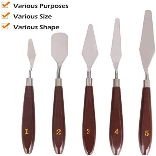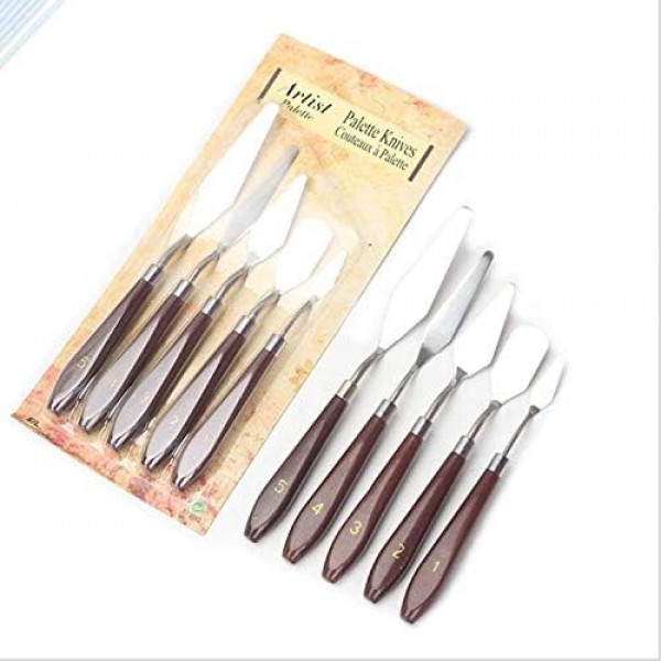 - Artist Palette Knife: 5 Pieces Set includes 1-each of all 5 Standard Paint knife Styles. this top quality knife has been crafted with the finest stainless blade that resists all corrosion or wearing from any media including acrylics.
