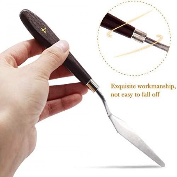 - Flexible & Durable: highly flexible Stainless steel painting blade with blunt edges, and strong wooden handle offer a long serving life, light and easy to hold.