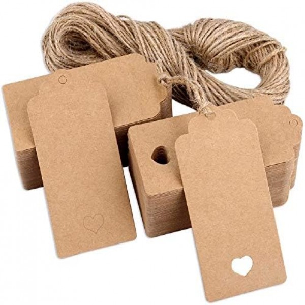 - Package:200 pcs Tag size 4.5cm x 9.5cm , jute string length 25 meters