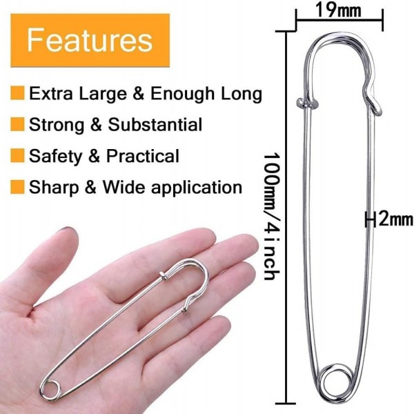 - Premium Quality: Safety pin large made from stainless steel, Sturdy and durable, strong enough for your household use, Not easy to bend, sharp and easy to operate.