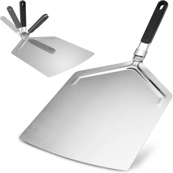- Material: Metal pizza peel that allows you to move pizza pies with feather-Lightweight. The thin,stainless pizza spatula paddle easily slips under pizzas and pies,much easier than thick wooden peels, and with our new, extra large pizza peel, even large, 16 inch pizzas are easy to move.