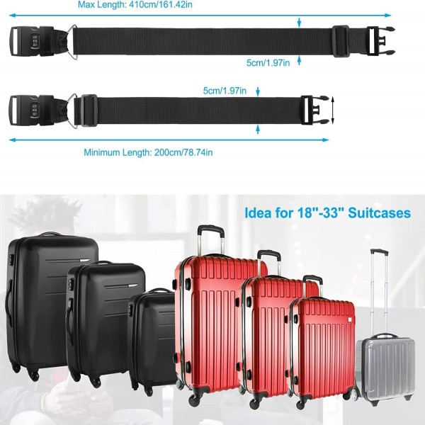 - Adjustable Length: The adjustable luggage packing belts can be used for suitcases 18-33 inch, fits most suitcases or luggage bags.