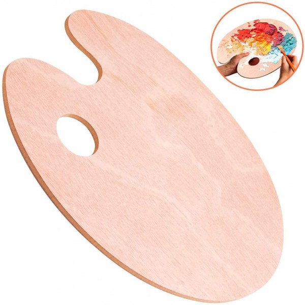 Paint Palette, Premify Wooden Artist Pallete with Thumb Hole for Oil Paint art, Acrylic colors, Size 30x24cm Lightweight Smooth Oval