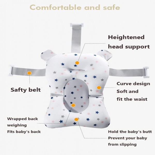 - Best for Baby: High Quality material, made without BPA or PVC, it is safe for infant delicate skin when shower time. Adjustable Bath Pillow : Anti-slide bath cushion padding three-side fixed buckle suspension can be adjusted by adjusting the buckle bath net strap,When the strap is tightened or the strap is raised or the strap is loosened, the bath mat slides down and adjusts to the comfortable bath mat height.Designed for 0-18 months baby.