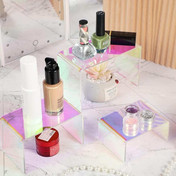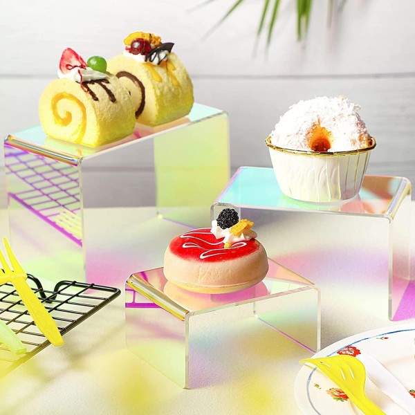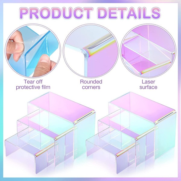 - Material - This showcase stands are made using high quality, lightweight and durable acrylic that is see through and completely clear to provide you with an elegant and classy way to display anything you want while adding more elegance and class to your event it gives Rainbow shades.