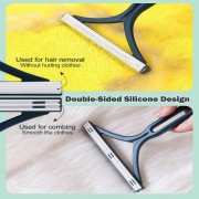 - EFFICIENT PET HAIR REMOVER: Physical structure and electrostatic adsorption make it an effective carpet scraper & clothes fur removing. One side is covered with raised dots which can reach deep for the most embedded hairs, Another side is covered with strips to smooth the fabric.