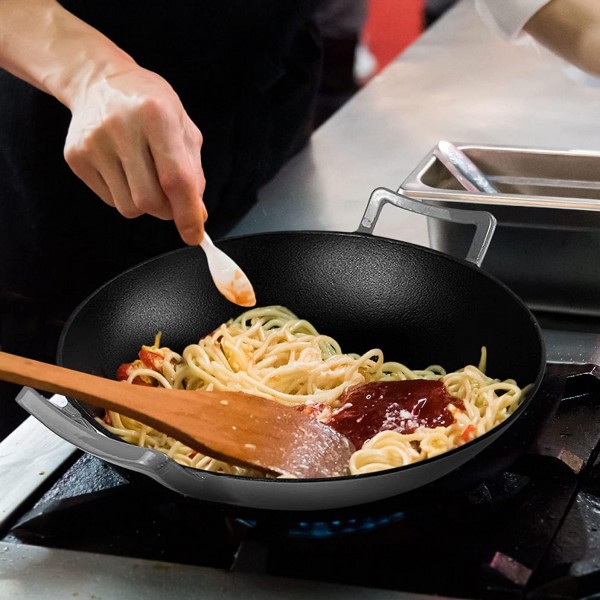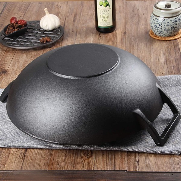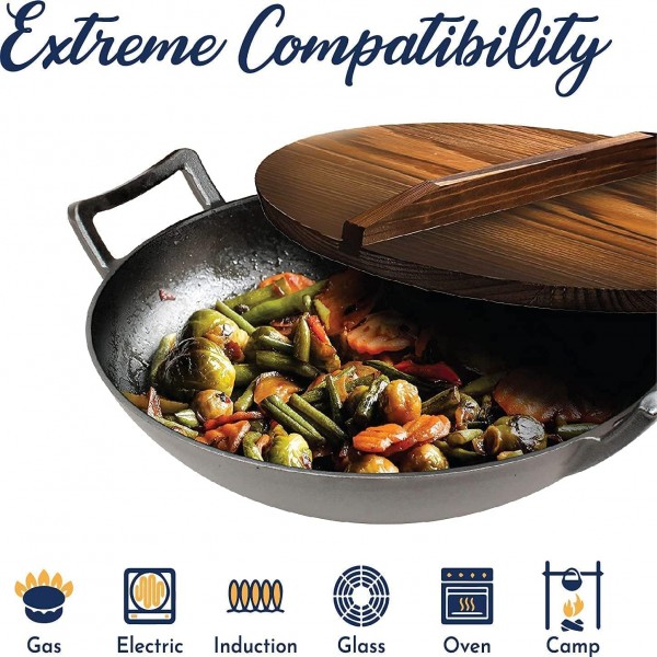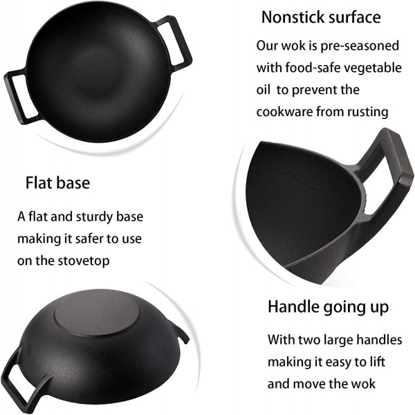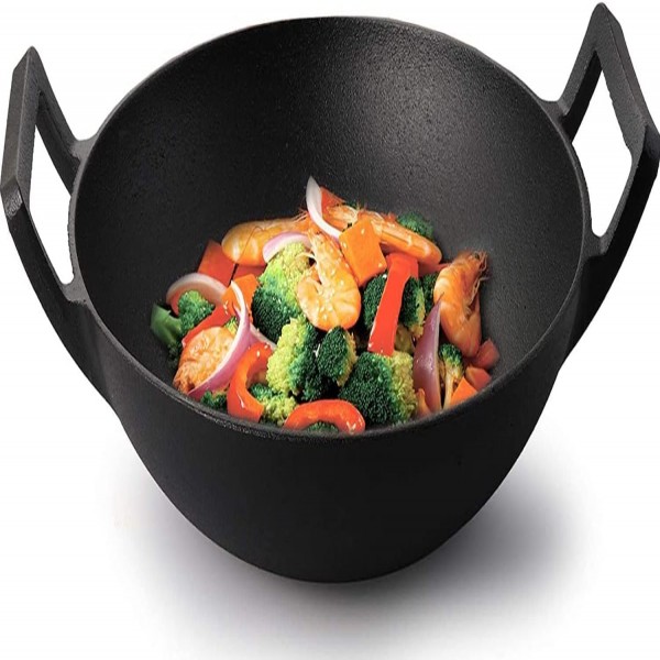 - This cast iron camping wok is pre-seasoned with vegetable oil as this prevents the iron from rusting as well as gives the wok a non-stick surface. This way you don’t have to season the wok yourself and can directly use it as you receive it.