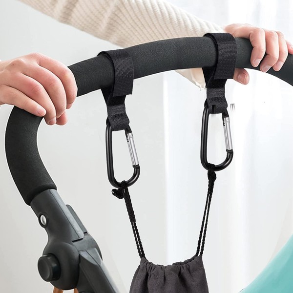 - Hands-free: The baby bag stroller hook is a useful tool to have when you're out and about with your children. Keep your change bag, school bag, lunch packs, jackets, and toys in one place so you don't have to hunt around for them. The stroller hook clips are ideal for strollers and are simply clicked on and off.