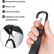 - Excellent materials: Buggy clips stroller is a must have for all parents. It is made of strong and sturdy aluminum instead of plastic and can support up to 5kg. These strollers hooks are composed of a strong nylon strap and a metal hook made of aluminum alloy. They are lightweight and portable and may be carried in your pocket or purse. Stroller clip for hanging bags are ideal for keeping your child's stroller or diaper bag secure when not attached to your stroller.