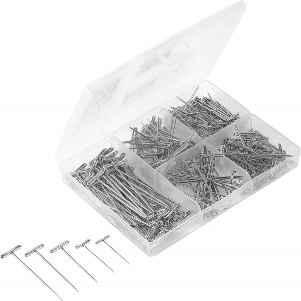 - High-Quality T Pins: High-quality blocking pins is a perfect addition to craft set, crochet kit or knitting kit, enough amount for your needs. Total 450 T pins (51mm 70pcs + 45mm 100pcs + 38mm 90pcs + 32mm 90pcs + 27mm 100pcs)