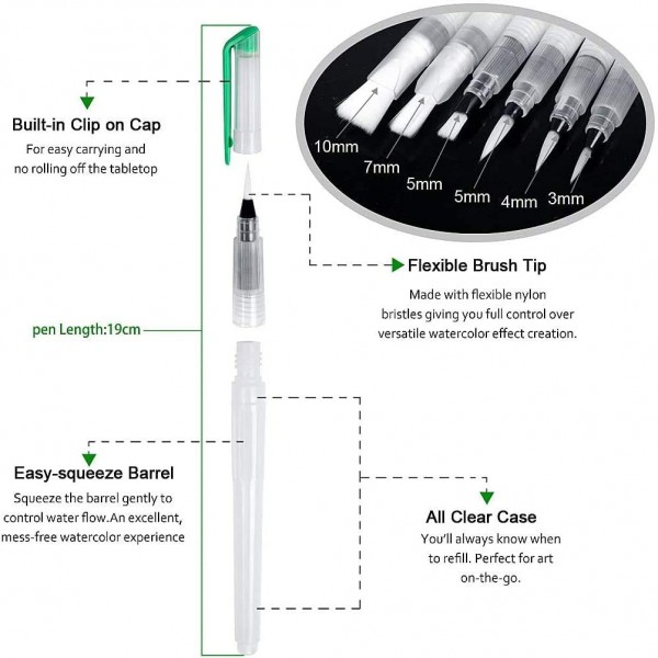 - MESS FREE & TRAVEL FRIENDLY – With our watercolour brushes’ controlled flow, the risk of spillage on your artwork is eliminated! Their leak free design makes them ideal for kids and adults alike, whilst their convenient size makes them portable and perfect for painting whilst out and about
