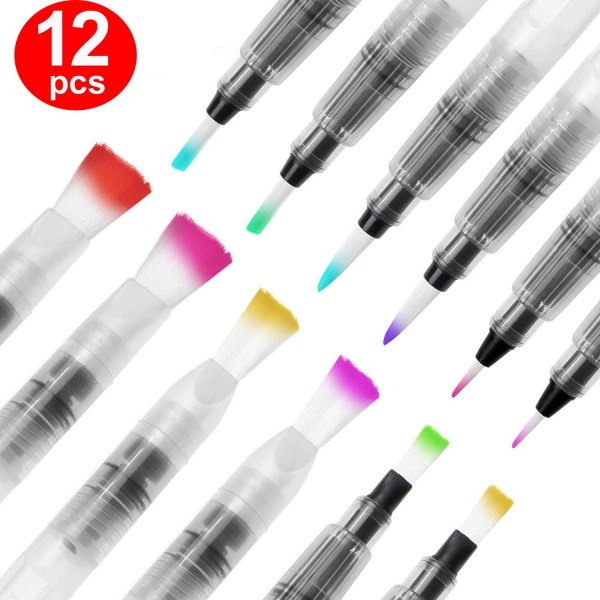 - NIB TYPES – Our 12 water brushes come in 6 different nib varieties. The small, medium and large round nibs are great for broad strokes, whilst the medium, large and extra large flat nibs are essential for small details, linework and base coating ( total 12 Pens)