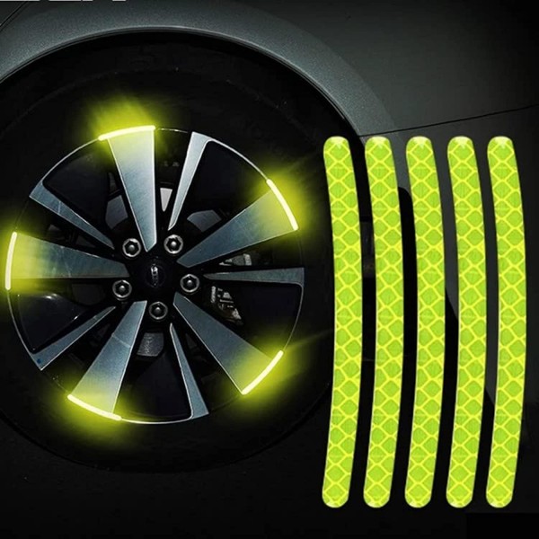 Premify 20 PCS Reflective Car Stickers, Wheel Rim Stripe Decal for Motorcycle Wheels Car Cycling Bike Bicycle (Green)