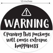 - Attractive Design: The gift label stickers display the words WARNING: "Opening this box will bring extreme happiness". The sticker makes the gift receivers excited for upcoming happiness and creates a sense of enthusiasm, making it gorgeous and stylish.