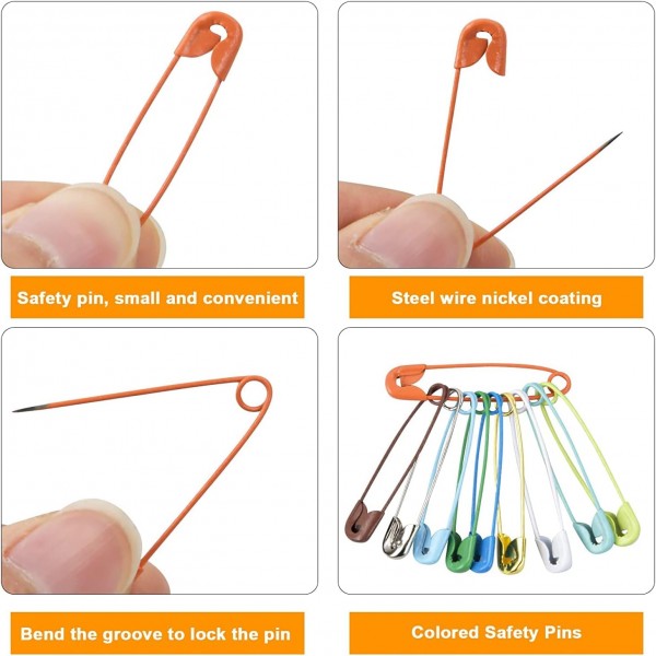 - [An excellent safety set]: Get creative or just make easier the daily household tasks in premium safety, with our colored safety pins. Made with your convenience in mind, our heavy-duty safety pins feature a safety clasp which keeps the pins locked and cover the sharp end to protect your fingers from accidents.