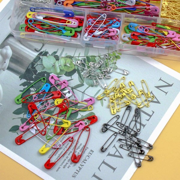 - [Multi-function]: The safety pins are good for Clothes Headscarf Brooches shawls, scarves, coats, jackets, cardigans, denim dungarees, pins for brooches or crafts, Ideal for quilting, , DIY, Craft making, Dressmaking, sewing, crafting, baby clothing, kilts, Blankets, Skirts, jewellery making, fashion design, saree pinning, running, marathons and sports events, and so on. Safety pins can be used to organize your socks, in Crafts Projects or to secure your baby's Pamper/diapers.