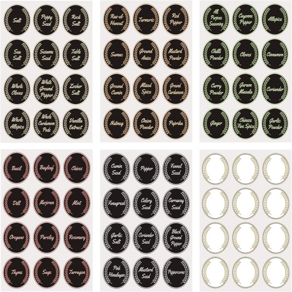 - 72 Labels for Jars: You will receive 5 sheets (60 Labels) pre-printed with names of most common herbs and Spices, 1 sheet (12 Labels) blank chalk pen labels are included for you to create your own. Please Note that ONLY Labels will be delivered. JARS, CHALK PENS OR ANY OTHERS DO NOT.