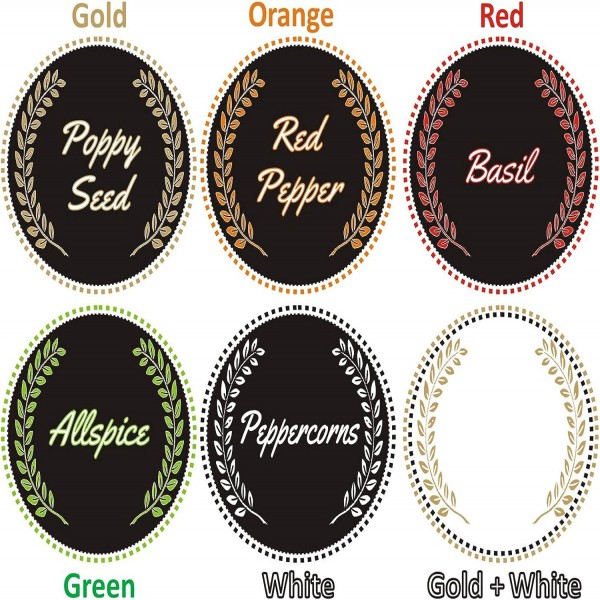 - Storage Labels Easy to Read & Eye-Catching Colors: The spice labels for small jars are featuring 5 colors including green, orange, black, Red, and Gold stickers. Labels stickers for jars are uniquely designed to maximize the font size so it can be read easily from distance. The white words with black background create a great contrast for easy identification.