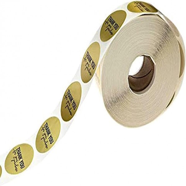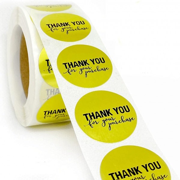 - Elegant Design: Round black and gold tune stickers, made from photo-grade paper with permanent adhesive, 500 PCs in each Roll. Perfect finishing touch to Thank you cards and envelope packaging.