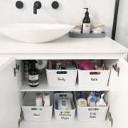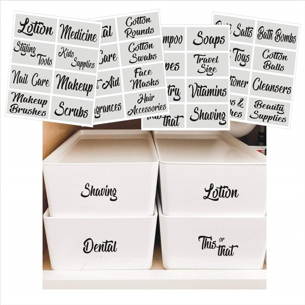 - PRINTED LABELS FOR CONTAINERS, DRAWERS & STORAGE BOXES: Organizing your bathroom countertop and cabinets. Organize everything in your makeup and bathroom essentials in baskets and bins for a tidy and organized look!