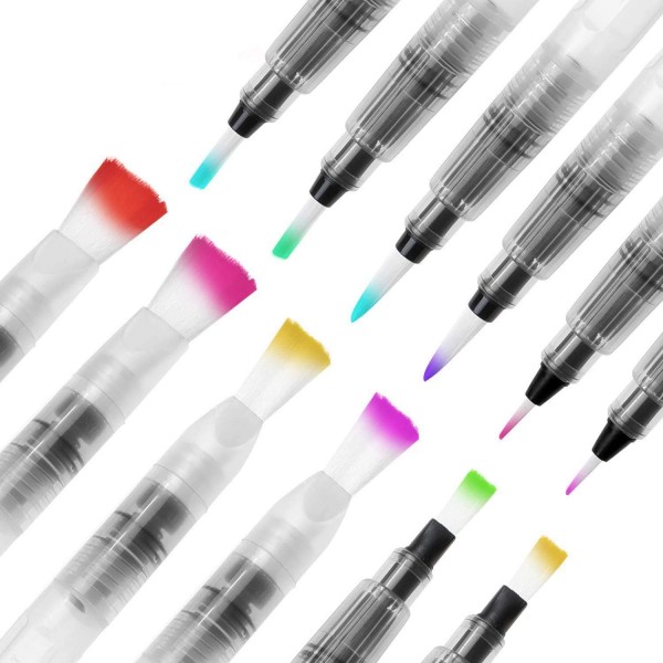 - INNOVATION – Our Refilable brushes function akin to a traditional paintbrush, but with an internal reservoir for water or watercolour ink, negating the need for a water glass. The perfect companion for Brush Pens, Watercolour Paints or other art supplies, their use is as simple as squeezing the barrel to release the liquid and begin creating!