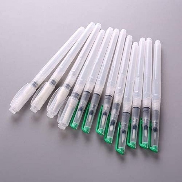 - NIB TYPES – Our 12 water brushes come in 6 different nib varieties. The small, medium and large round nibs are great for broad strokes, whilst the medium, large and extra large flat nibs are essential for small details, linework and base coating ( total 12 Pens)
