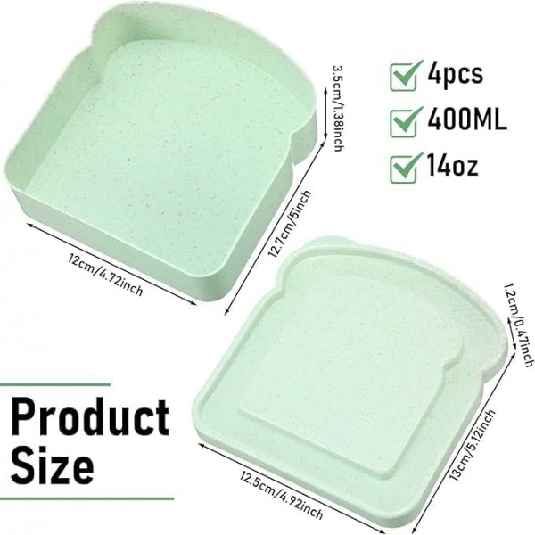 - Sandwich Containers: The package comes with 4 pieces of sandwich containers in 4 colors, pink, light green, gray and beige, each color has 1 piece, different colors can meet your distinction needs. The reusable sandwich containers are shaped like bread. Perfect size for sandwiches and still you can put some fruits, snacks.