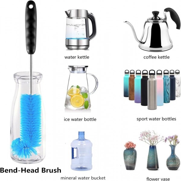 - Bendable and Sturdy Handle: The long handle bottle brushes are designed with a flexible handle that can be easily bent and shaped to work around corners and difficult-to-reach areas. The brushes have good grips, ensuring a comfortable hold and making the cleaning process quick and easy.