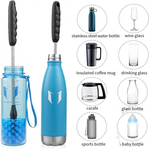 - Versatile: This BPA-free bottle cleaning brush set is designed to give any water bottle, drinking glass, tumbler, wine decanter, such as water bottle straws, teapots, nozzles, and milk bottles. They can also be used for cleaning other items, giving them a new and refreshed look and even the kitchen sink a good old scrub.