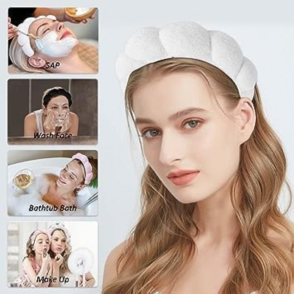 - Perfect Size: Our make-up hair band is flexible and stretchy and fits most people. This unique sponge head has a certain weight, so it can be worn stably on the head and does not slip easily. The bubble headband is lightweight and soft and does not stretch your scalp, so you have a pleasant experience when you care for your skin, clean, shower, apply make-up or remove it.