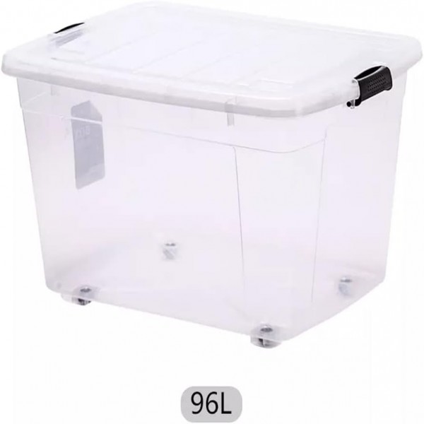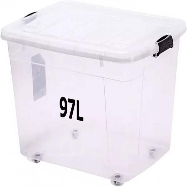 - TRANSPARENT – 97L Storage Box with Lid, Super clear plastic material makes the body and lid clear enough to identify the elements outside from any angle. Each Box Size: 64cm x 46cm x 43cm.
