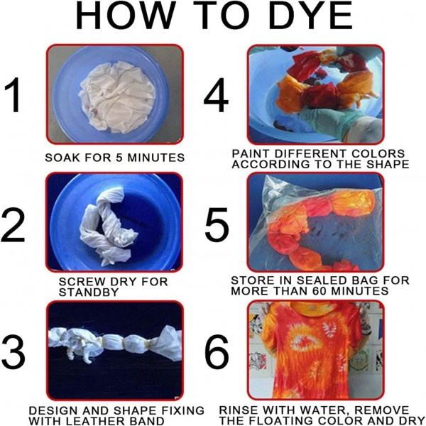 - Enhance Your Creativity: Tie-Dye kit is a great way to have a fun time, and with these packets, you can create fun designs on your clothes, bags, and furniture. The dye will affect the fabric's color when combined with fabric and water.