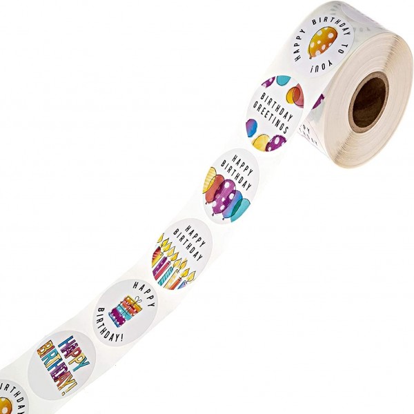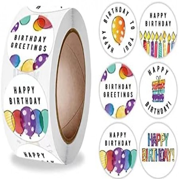 - Package Includes: 1 roll of 500pcs birthday stickers for kids and adults. 6 unique designs.