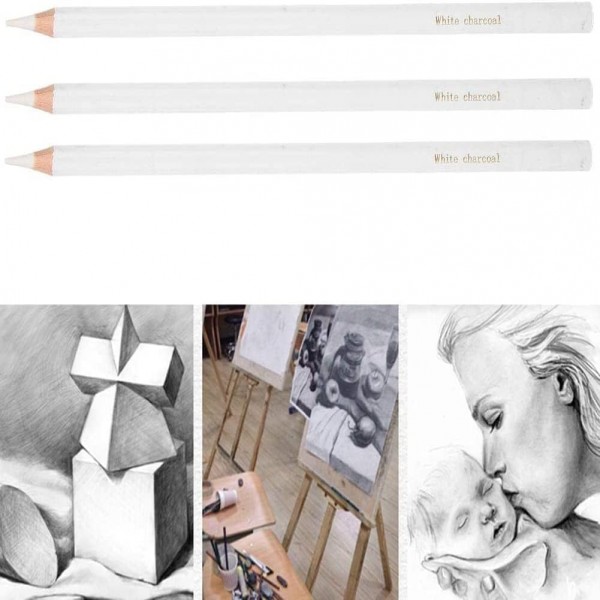 - Widely Use--- The set of 3 white charcoal pencils are ideal for use on dark or tinted paper and can also be used in conjuction with other drawing media, Perfect for drawing, writing on black paper, highlight, sketching and so on