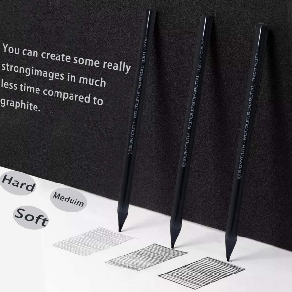 - Professional Charcoal Pencils Set - The charcoal pencil set contains 3 charcoal pencils with different degrees of hardness (soft, medium, hard). Get the traditional effect of charcoal with more control and less mess. Great for detailing, sketching, drawing, shading and blending.