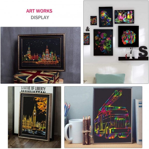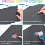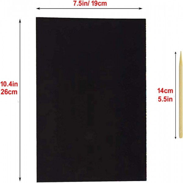 • ✍️SCRATCH PAPER EDUCATION KIDS -- Use the scratcher to scratch away the black matte surface of the paper, revealing the colorful background, so fun plus allows for amazing creative artwork, signs, and more! Makes an excellent arts and crafts activity for kids or grown-up artists! Keep kids busy with this delightful craft supply!