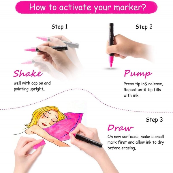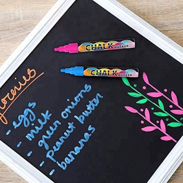 - 【Reversible Tips】6mm Round tip and chisel fine tip in one! Just a simple switch between the two most common variants to let your creativity run free. Unleash your creativity with this amazing set of neon chalk pens. Turn any non-porous surface into a canvas - decorate mugs, windows, mirrors, metal, whiteboards and more.