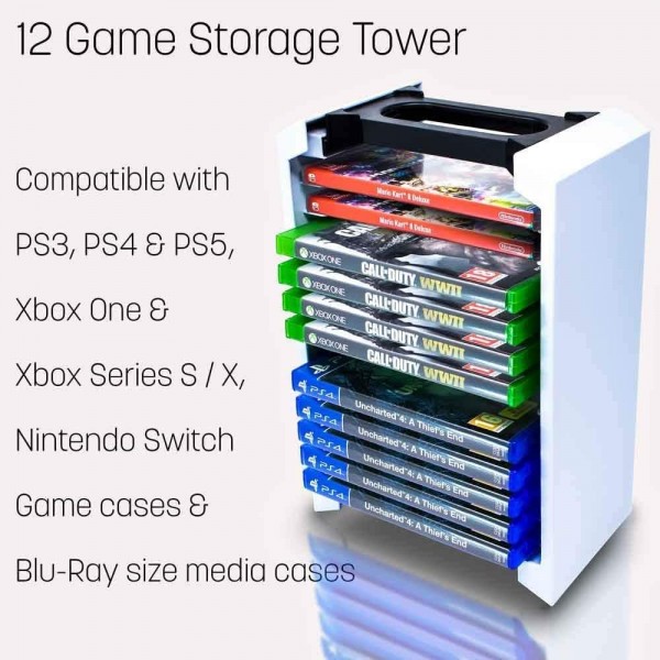 - 1. Game Accessories Organizer: It can store 12 game boxes. The bracket fits your game console shell and can easily find what you want. Great for keeping everything together and organized.