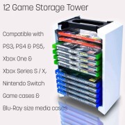 - 3. High Compatibility: A variety of game storage racks, specially designed for various game box accessories, you can put your for PS5/4, for NS, for XBOX and other game boxes on the shelf.